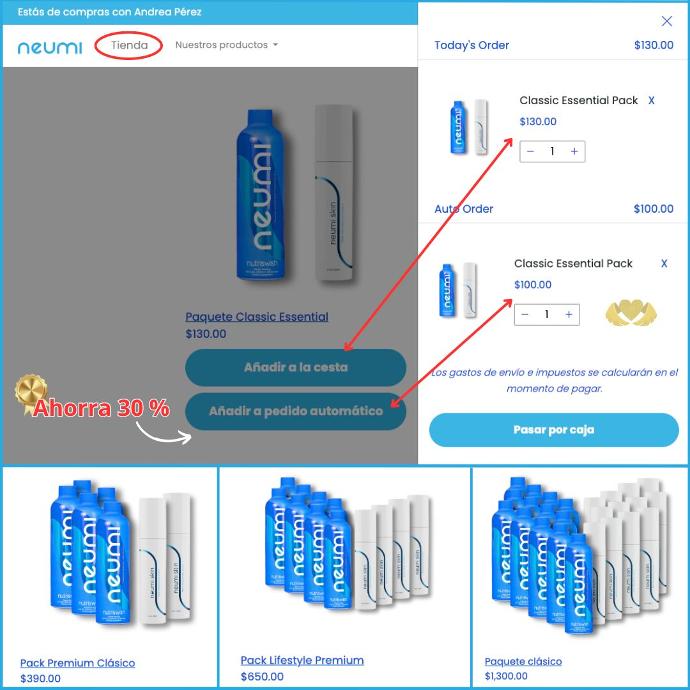 Mientras que el Pack Premium Clásico por el mismo valor de $300 y la misma cantidad de productos, te mantendrá activo durante solo un mes con un volumen de 300 PV.